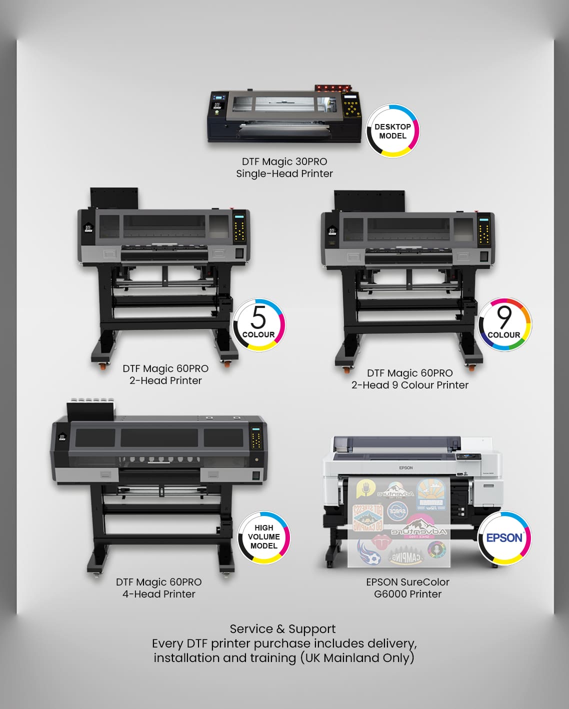 The company supply and support the latest in digital printers, heat presses and plotters/cutters. All of which are supported with a comprehensive warranty and outstanding technical and sales support.