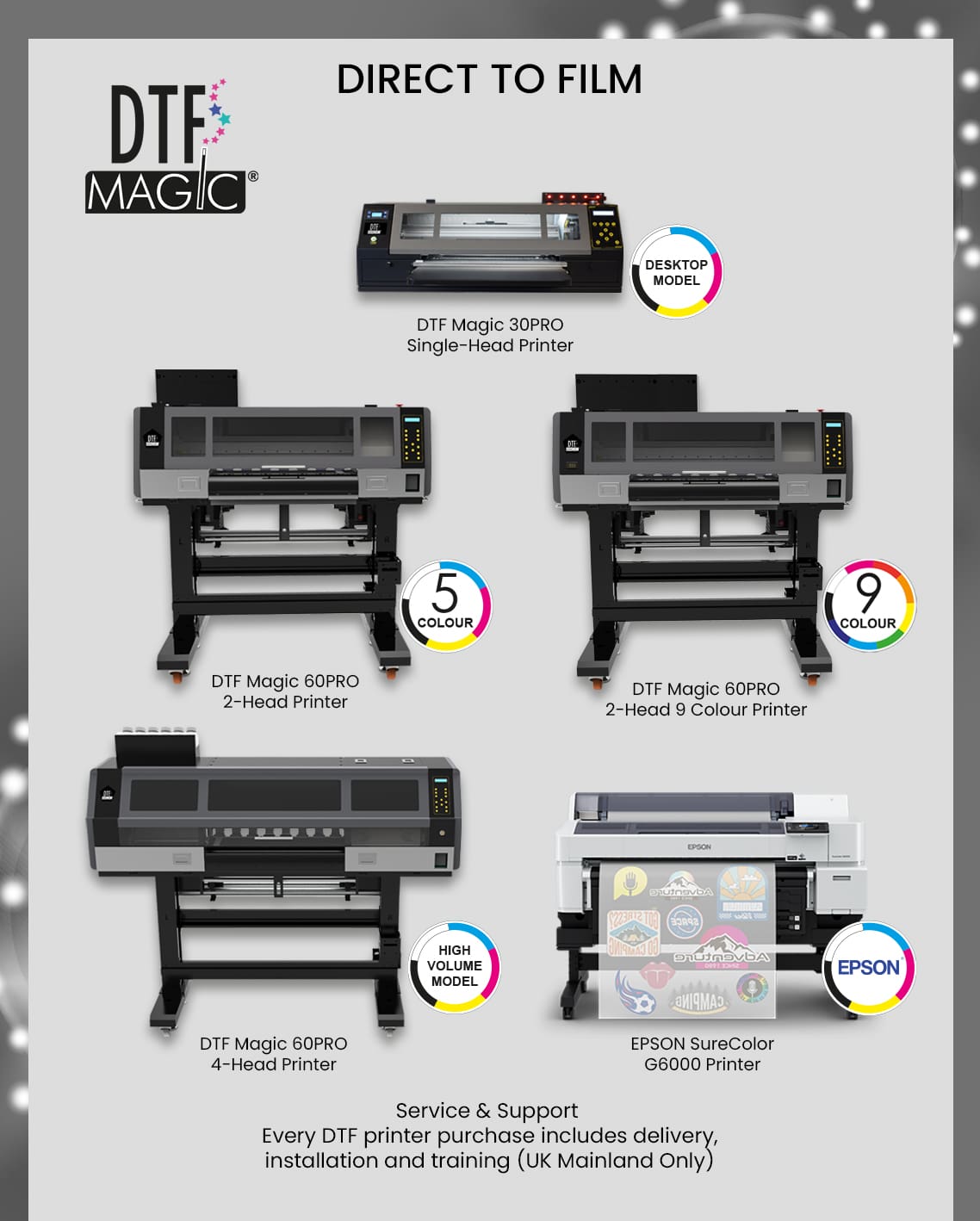The company supply and support the latest in digital printers, heat presses and plotters/cutters. All of which are supported with a comprehensive warranty and outstanding technical and sales support.